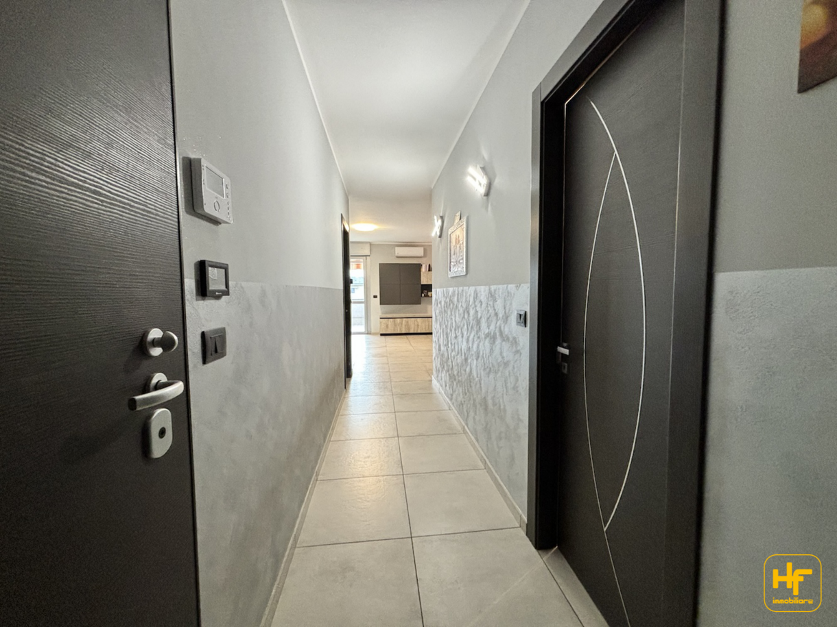 In posizione comoda. Appartamento completamente e finemente ristrutturato nel 2019, composto da: ingresso, ampio soggiorno con cucina abitabile a vista (complessivamente di circa 40 mq), due camere da letto, due bagni (uno con box doccia e l’altro con vasca angolare), ripostiglio. Terrazzo di circa 30 mq. Giardino privato. Cantina. Box auto doppio. Riscaldamento autonomo servito da caldaia a condensazione! Infissi esterni in pvc con doppi vetri e zanzariere! Tutte le serrande sono coibentate e motorizzate! Antifurto perimetrale! Portoncino blindato! STANZE AMPIE! Ottimo stato: da vedere! Possibilità di acquistare un ulteriore box auto singolo. Richiesta: 219.000,00 Euro. Classe energetica: E - 234,81 kWh/m2.