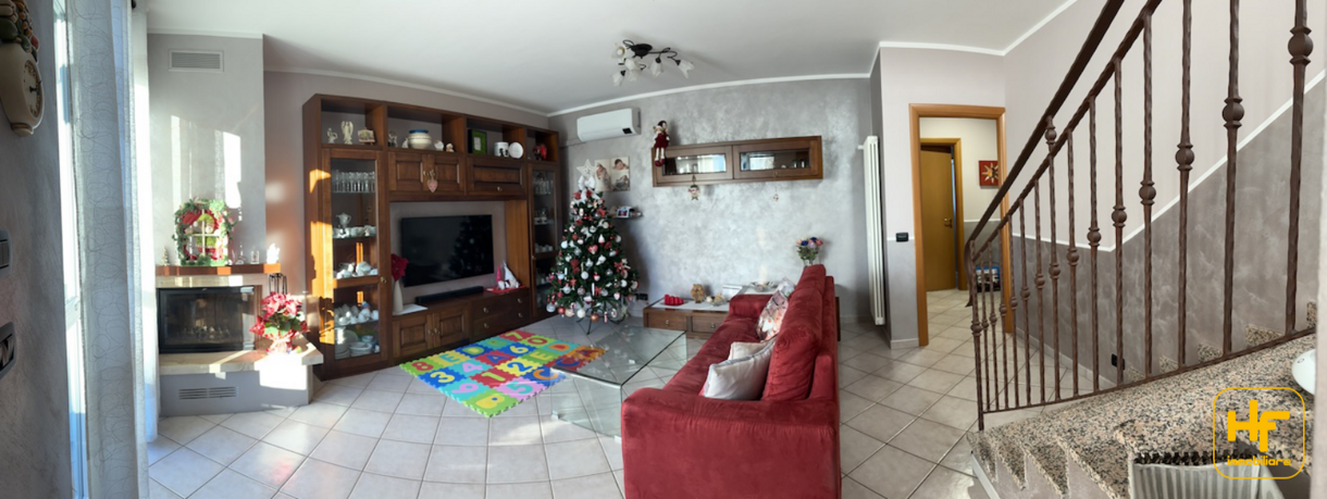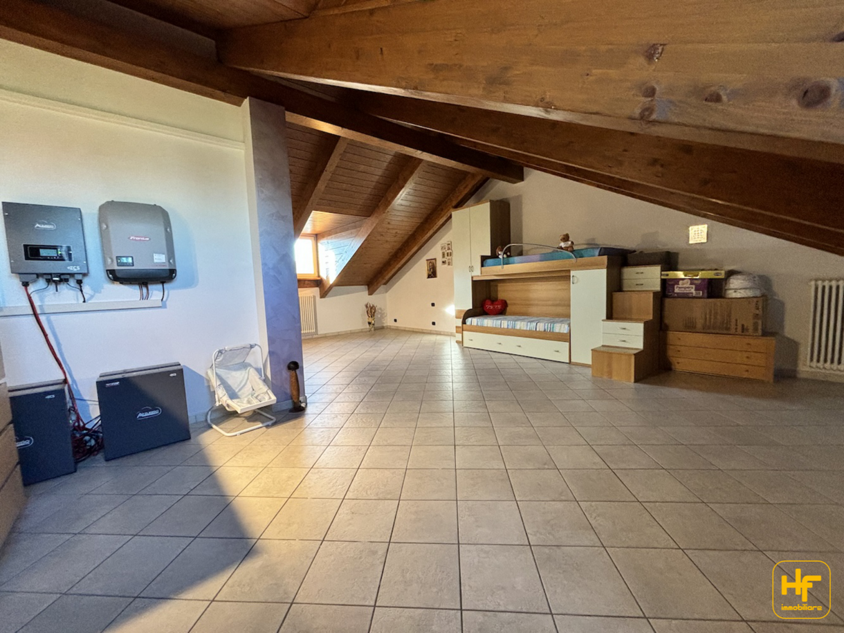 In posizione tranquilla ma comoda ad ogni servizio. Recente villa a schiera, libera su tre lati, composta da: Piano Terra_ ingresso living in soggiorno con camino a legna ventilato, cucina abitabile separata da un muro in mattoni (volendo con possibilità di rendere un unico ambiente la zona giorno), disimpegno, bagno con box doccia e sanitari sospesi; Piano Primo_ tre camere da letto (delle quali una con balcone), disimpegno, bagno con vasca idromassaggio e sanitari sospesi; Piano Mansardato_ unico ambiente rifinito con travi a vista in abete rosso lamellare con due abbaini (volendo recuperabile con altre due camere e bagno); Pieno Interrato_ ampia tavernetta, locale lavanderia, ripostiglio. Box auto doppio in larghezza. Giardino privato. Recentissimi infissi esterni in pvc con doppi vetri! Zanzariere ad ogni infisso! Aspirapolvere centralizzato con bocchette in ogni ambiente! Termostato e citofono ad ogni piano! Antifurto volumetrico e perimetrale! Videosorveglianza! Inferriate ad alcuni infissi! Riscaldamento autonomo servito da una recente caldaia a condensazione e pompa di calore (impianto ibrido)! Fotovoltaico con batterie di accumulo! No spese condominiali! Richiesta: 287.000,00 Euro. Classe Energetica: in fase di richiesta.