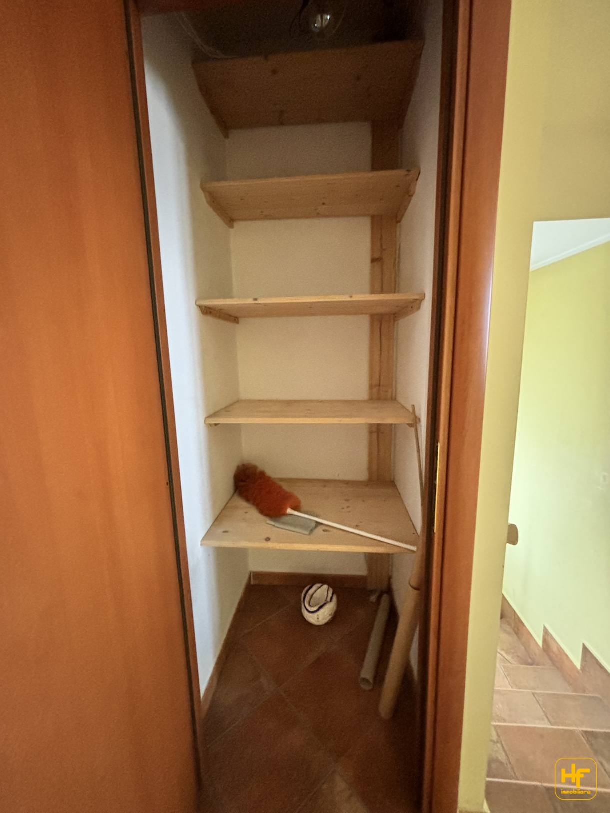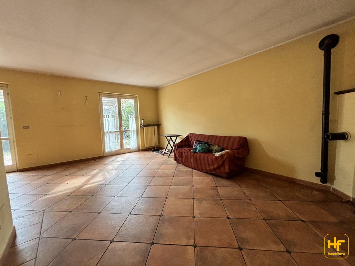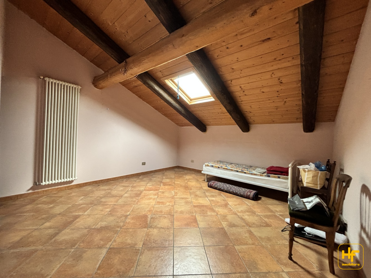 Villa semindipendente, libera su tre lati, composta da: Piano Terra_ ingresso, ampio soggiorno con canna fumaria, cucina abitabile a vista, bagno con doccia e ripostiglio; Piano Primo_ doppia camera (dati i due accessi a questo ampio ambiente diventa semplice, al bisogno, ricavare due camere), bagno con vasca, ripostiglio. Terrazzo coperto di circa 40 mq; Piano Mansardato Abitabile_ tre camere (due delle quali arricchite dalla presenza di ampie cabine armadi), bagno con doccia; Piano Interrato_ locale lavanderia, due ampie cantine (in una di esse è presente la canna fumaria e la predisposizione di tutti gli impianti utili per poter ricavare una tavernetta), ripostiglio, box auto doppio in larghezza accessibile da due basculanti e collegato internamente all’abitazione tramite portoncino blindato. Porticato di circa 40 mq. Giardino privato, distribuito sui tre lati, di circa 350 mq con tre punti acqua. Riscaldamento autonomo a metano con termosifoni in ghisa! Infissi esterni in legno con doppi vetri! Antifurto volumetrico e perimetrale!